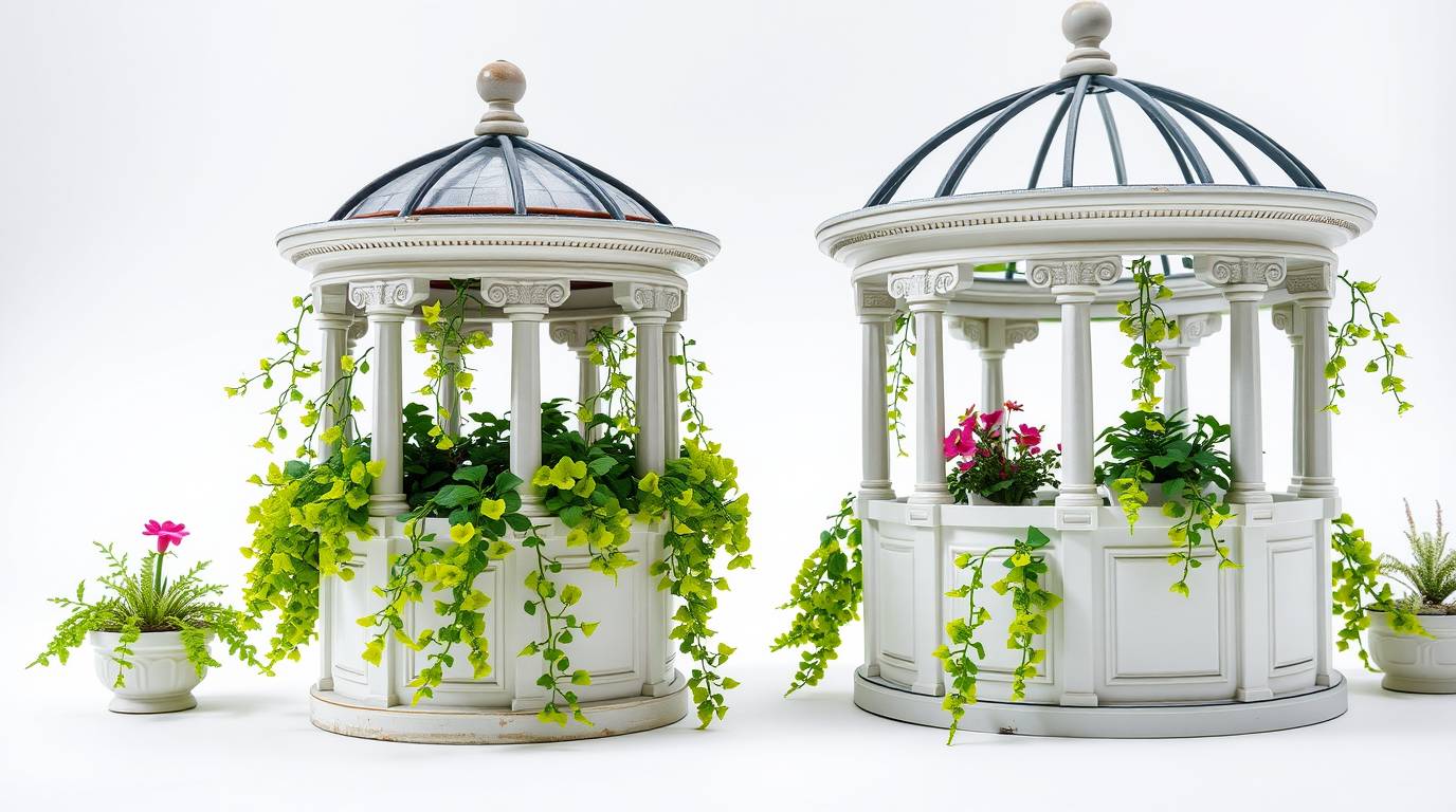 Az időtlen elegancia suttogása. Klasszicista stílusú kaspók, virágládák és építészeti ihletésű dekorációk, amelyek a kastélyok és antik kertek hangulatát idézik. Matt fehér, kőhatású felületek, melyek méltó keretet adnak növényeidnek, tárgyaidnak.