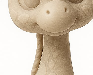 A forma kialakítása és funkciója: A figurák felületei tartalmaznak finomabban kidolgozott, ismétlődő vonalakat és éleket (pl. csíkok a Zebránál, vagy a Zsiráf foltjainak körvonalai).