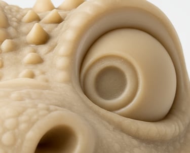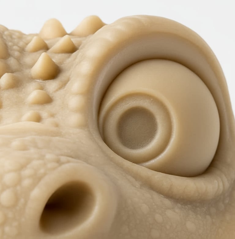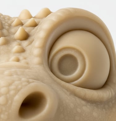 A forma kialakítása és funkciója: A figurák felülete rendkívül tagolt, mélyedésekkel és apró kiemelkedésekkel (pl. pikkelyek, durva bőrfelület). Ezek a mikró-domborulatok és mélységek szinte kényszerítik a gyermeket bizonyos technikák használatára.