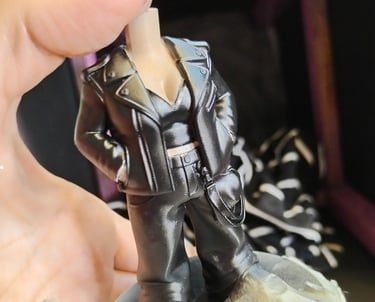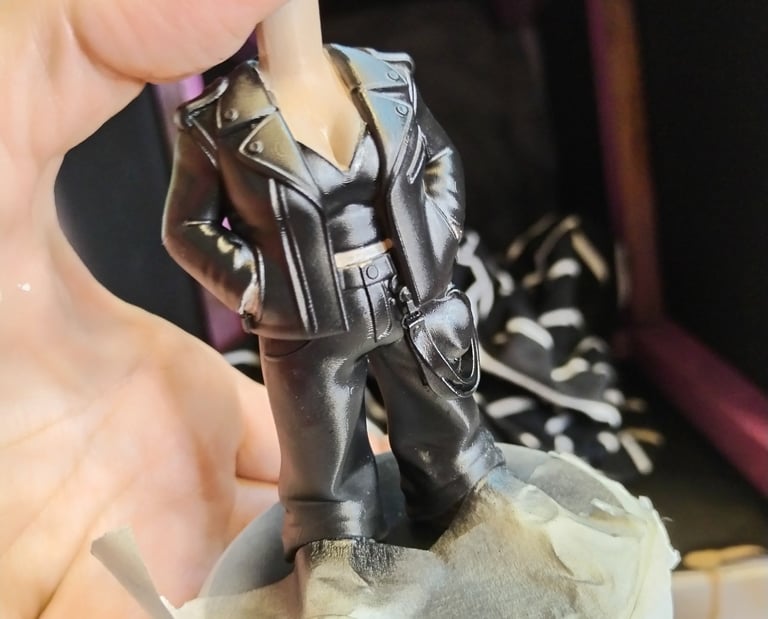 Festés: A folyamat a bőrszín pontos kikeverésével indul. A nagy felületeknél (bőr, haj, ruha) airbrush technikát használunk a makulátlan, gyári simaságú végeredményért. Ezt követi a türelemjáték: a részleteket és az illesztéseket kézzel, nagyító alatt festjük meg.