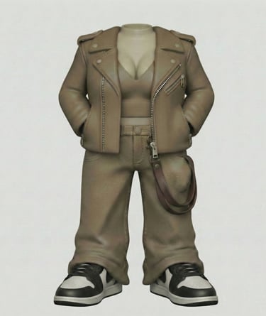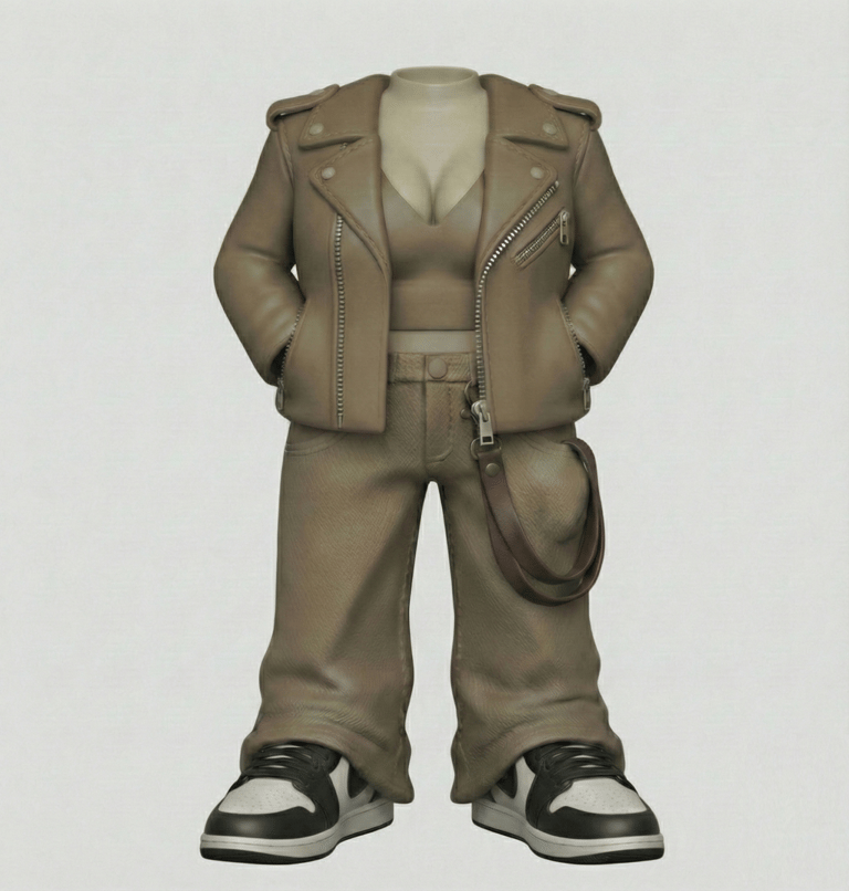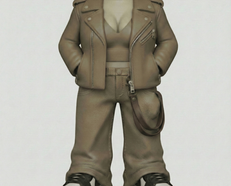 Ruhatervezés 3D-ben: A lányok valódi ruhatárát (a bőrdzsekit, a farmert) digitálisan állítottuk elő fénykyépek alapján, hogy minden gyűrődés ott legyen, ahol a valóságban is. A képen nem látható, de a megrendelő áűltal kért kiegészítő részleteket pedig magunk készítettük el.