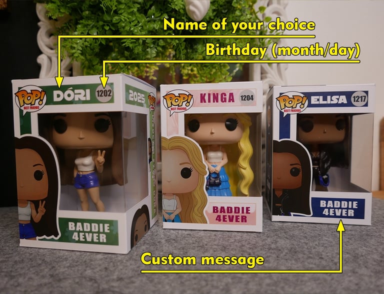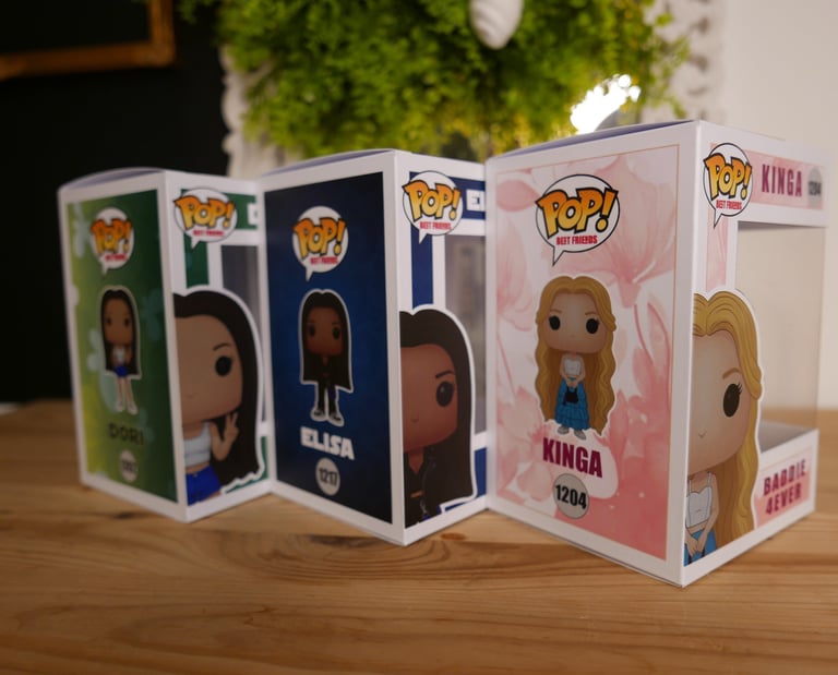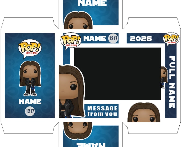 A doboz dizájnja nem csak a POP karakterek színvilágához igazítottuk, hanem az ajándékozott kedvenc ízlésvilágát is tükrözi.