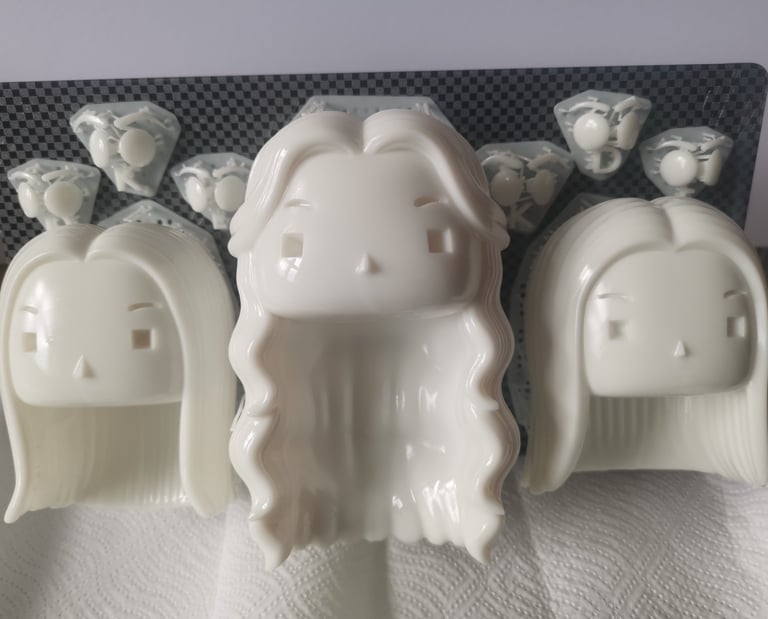 Hogyan lesz a festés borotvaéles? Úgy, hogy nem egyben festjük. A képen látható 'nyers' fázis mutatja a technológia lényegét: a fejet, a testet és a talapzatot külön választva gyártjuk.