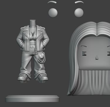 A figurákat kétféle csúcsminőségű eljárással készítjük: vagy kézzel öntjük őket környezetbarát Jesmonite (A1) kompozitból, vagy nagy precizitású, vízbázisú resin (gyanta) technológiával nyomtatjuk ki. Minden darabot alapozva vagy festésre kész állapotban adunk át, így az alkotó azonnal a lényegre – a színekre és a textúrákra – koncentrálhat.